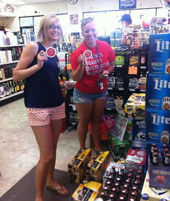 stand against underage drinking by placing brightly colored stickers on multi-packs of beer, wine coolers, and other alcohol related products that appeal to underage drinkers.